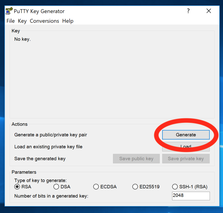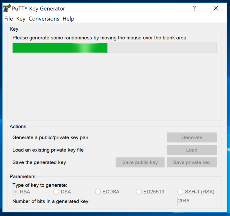 - Move the mouse around the PuTTyGen window to aide random number generation: