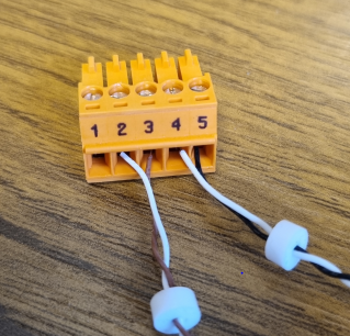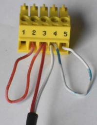 These will consist of 1 white and 1 red wire. The red wire will go into pin 3 with a shorting link into pin 2. The white wire should then be put into pin 4 with a shorting link into pin 5.